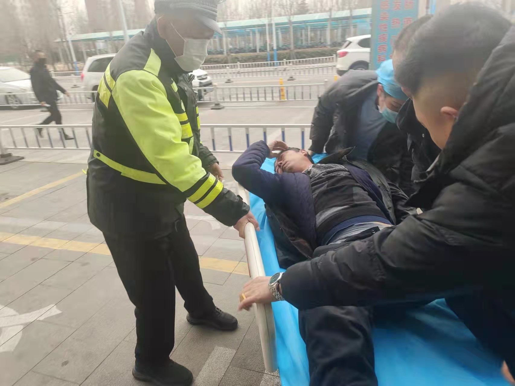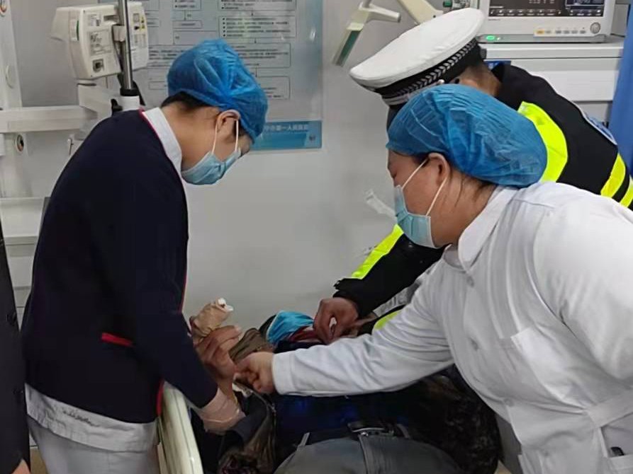 1月18日8时,正值车流、人流高峰期,嘉祥交警大队城区中队铁骑队队员张国乾在吉祥路指挥交通时,一少年骑电动自行车突然失控,摔倒在地,张