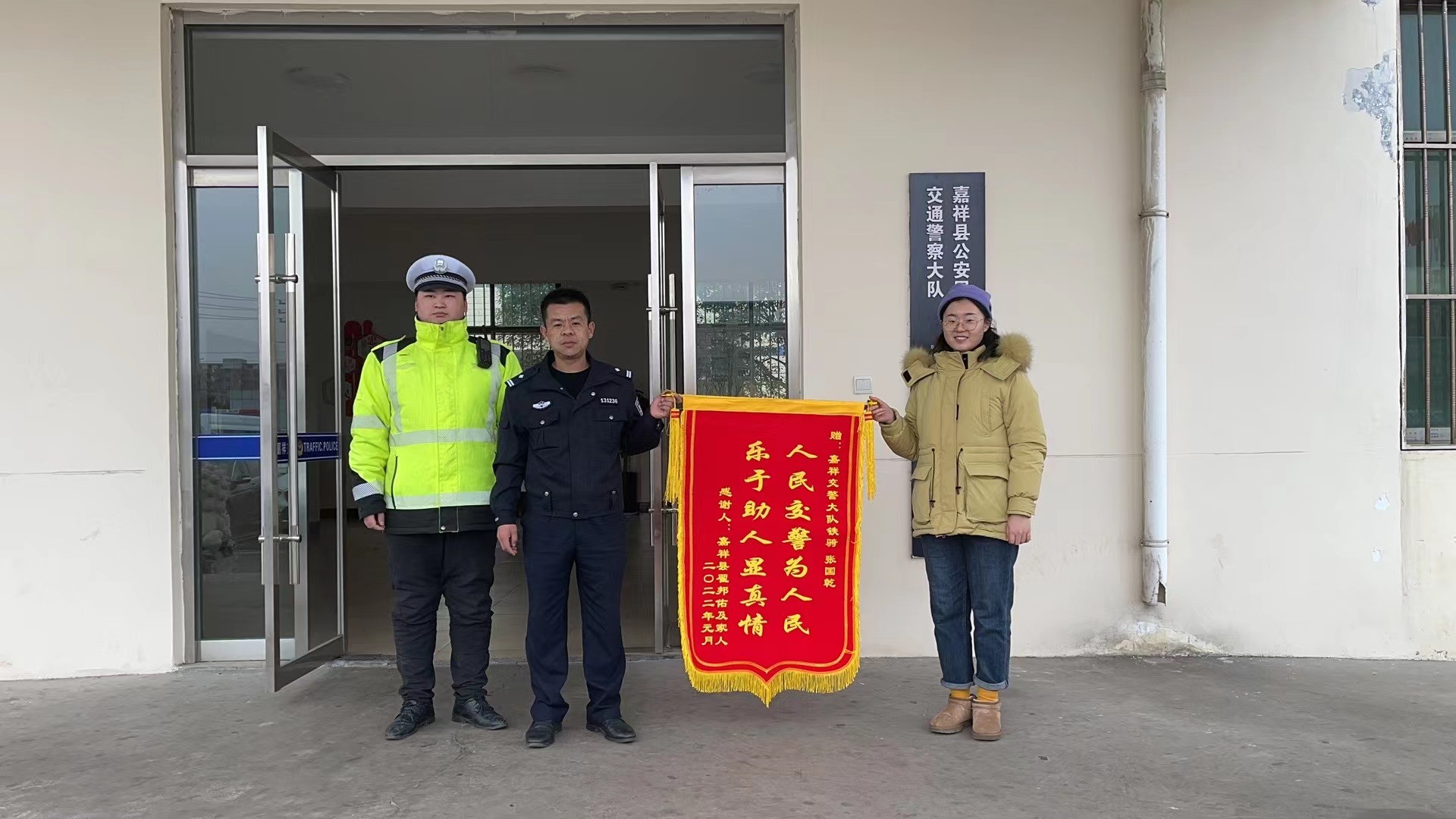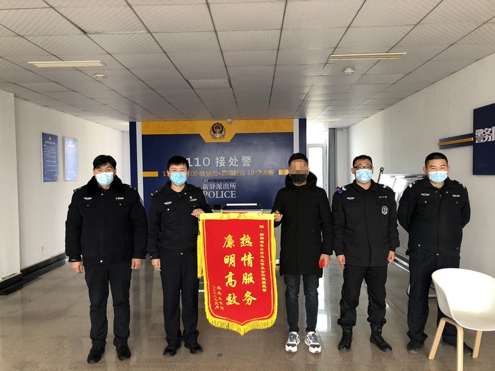 2021年12月31日,嘉祥县城区居民董先生将一面印有“破案神速 执法为民”的锦旗送到萌山派出所民警手中,对民警帮其追回手机表示深深感谢。