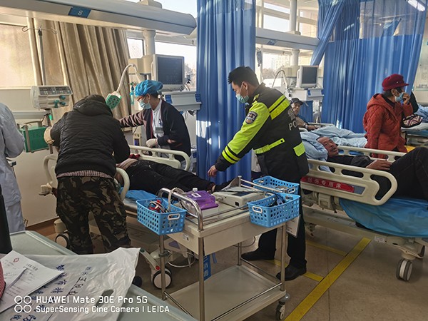 1月5日9时许,嘉祥县公安局交警大队梁宝寺中队执勤人员刘士方、张磊、李国将在省道319线附近巡逻时,一辆面包车驾驶人大声呼喊:车上载有突发急症的病人,急需前往济宁市人民医院就医,请求帮助!
