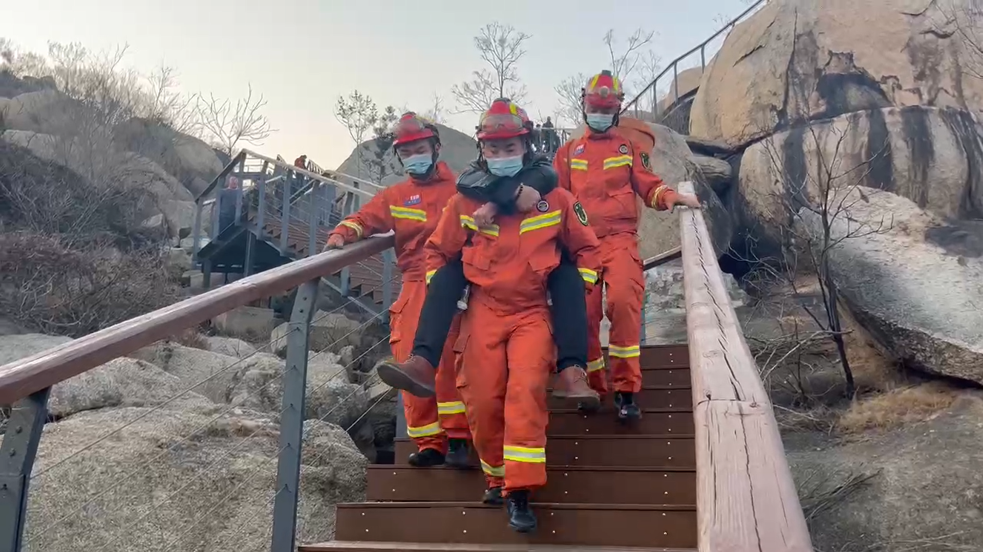 1月1日15时40分,济宁消防救援支队邹城大队接到报警称:位于邹城市千泉街道护驾山半山腰处,一名群众脚部受伤,被困山上,希望消防员帮助下山。