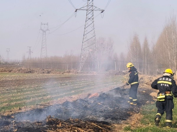 11月18日,国网济宁供电公司输电运检中心保电人员联合消防队伍及时处置一起线下秸秆焚烧行为,及时消除了事故隐患,确保一级防护线路安全可靠运行。