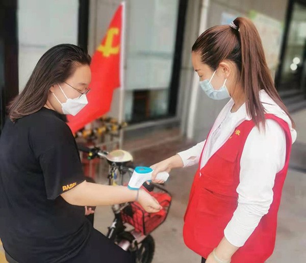 2021-08-20大娘,外出一定要佩戴好口罩,做好个人防护……8月16日,在汶上县军屯乡李家集村查验报备点,身穿红马甲的大学生志愿者武晓明正对来往的群