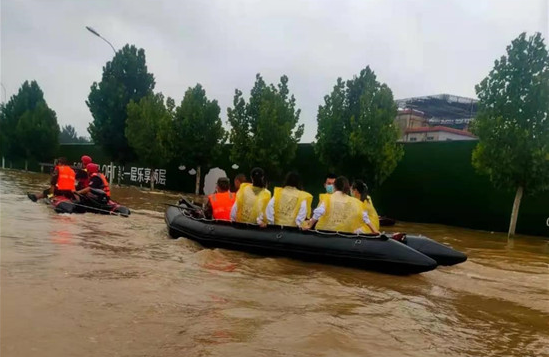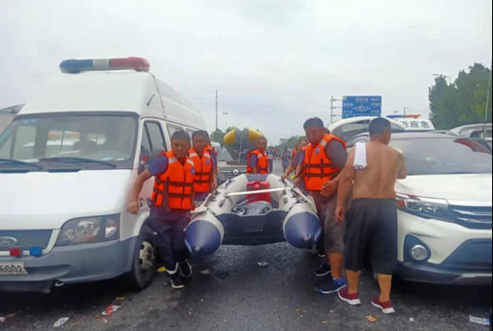 7月20日,河南省遭遇极端强降雨,郑州因暴雨引发险情。一方有难,八方支援。危难时刻,中志协应急委发布紧急救援通知,组织各省市县救援队投入抢险救援工作,梁山大义救援队自愿请缨作战,组织第一批救援队,7月21日18时,首批10名队员(宋桂金、郭刘占、尚清敏、关广明、李同福、闫化军、张思蕊、赵洪金、陈中荣、李兆焱)出动救援车辆三辆,携冲锋舟、船外机、发电机、救援绳索、弥雾机两台、担架两幅、伸缩梯、救生圈、救生衣和急流救援装备,星夜驰援郑州。