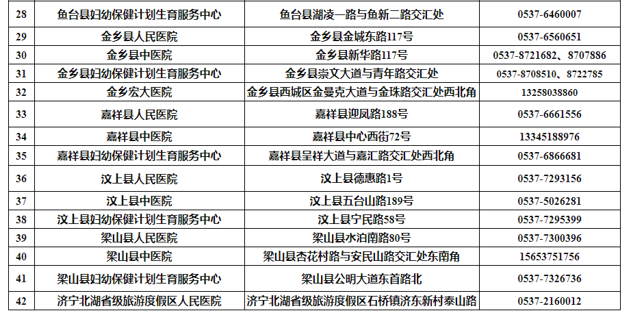 济宁市卫生健康委员会公布42家医疗机构发热门诊名单,具体地址、电话如下:
