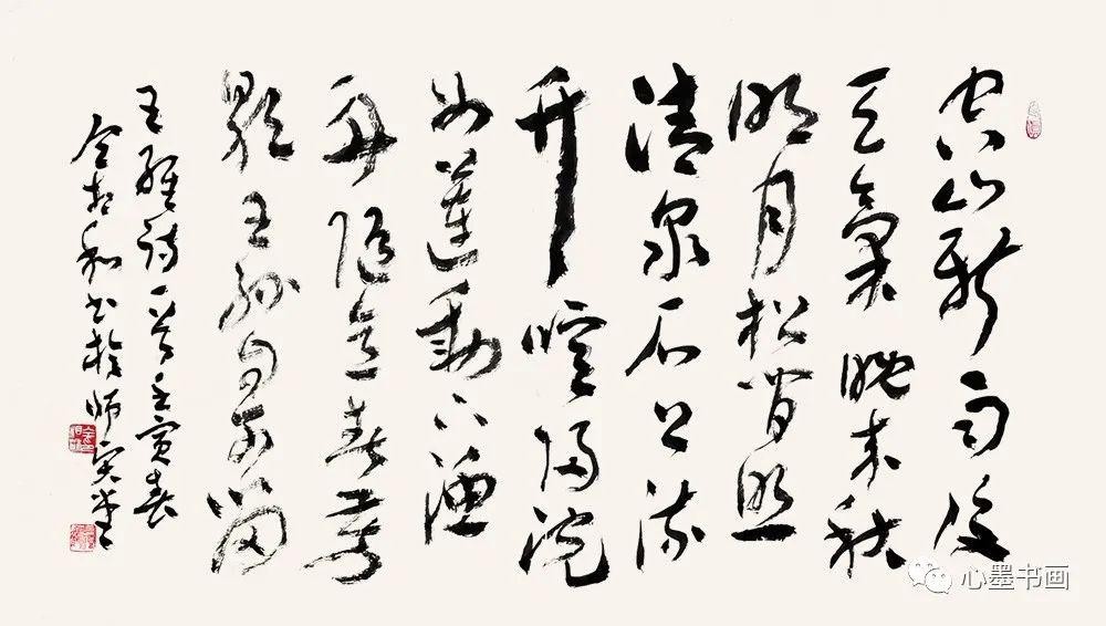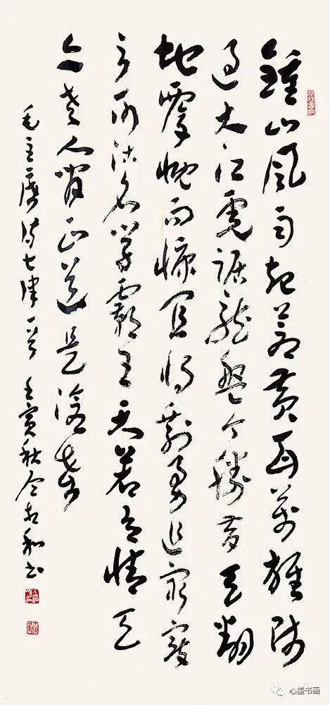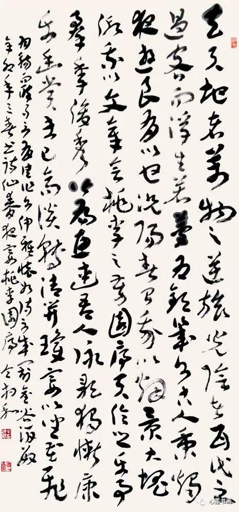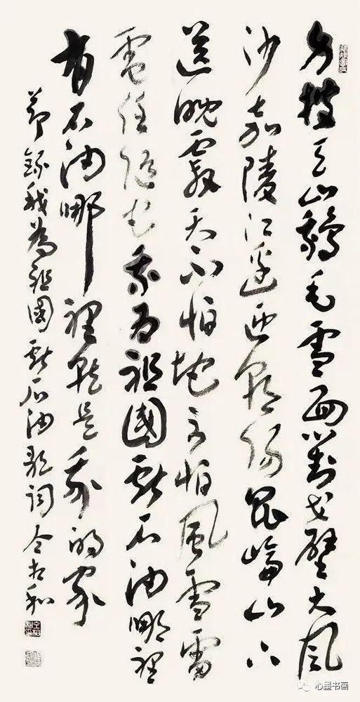 当他看到章草八尺对开十条屏《岁月如歌》(见大八开精装本《仝相和书法作品集》2-9页。为简便计,以下引用均以《仝集》称)时,审视了一会说:“此篇洋洋洒洒,前后统一贯气,有涨墨、有枯笔,字有大小斜正疏密,其中斗、中、师、伟等,比一些小字大三五倍,应了‘万山磅礴必有主峰’一说。既有变化,又能统一,布局谋篇,用心良苦啊。”
