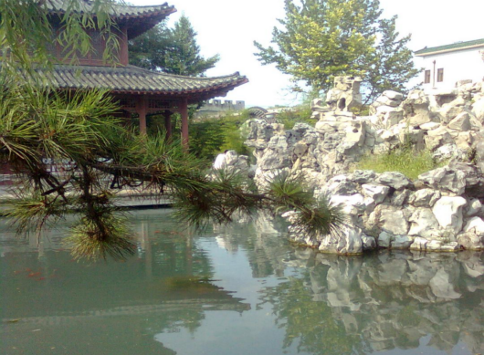 阳光下的树影斑驳了多久时间,清风中的河畔摇曳了多少红莲。金色的光辉透过丝丝缝隙洒在地上,形成了一条金色银河,微风轻柔地牵引着我,携着怀古之情来到了少陵公园。